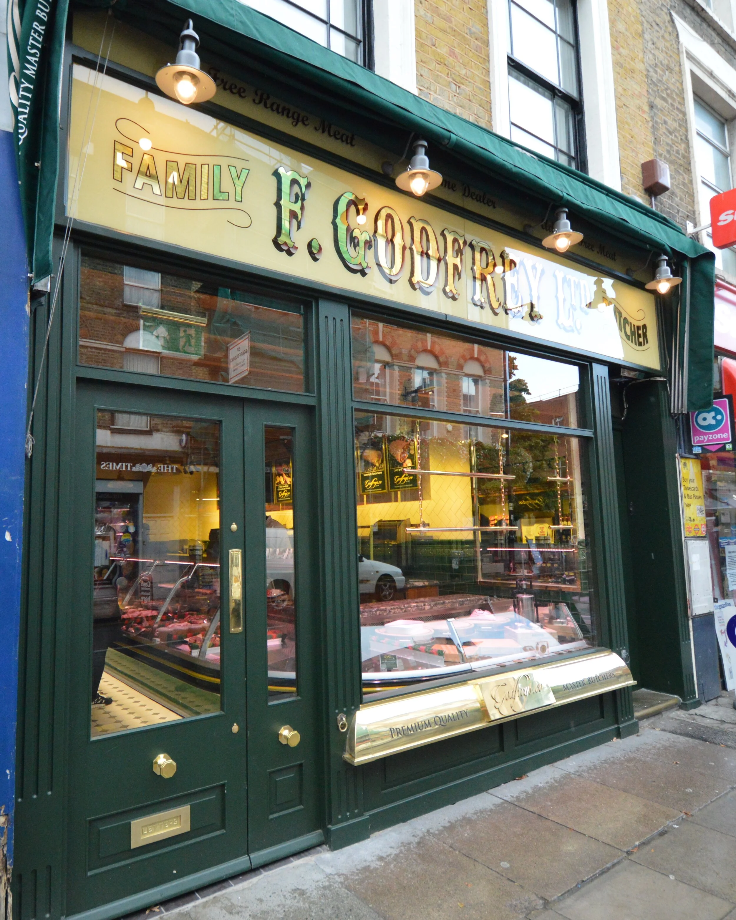 Godfrey’s Butchers was established in 1905 and has remained in the family to this day, now run by the great grandchildren of Frank Godfrey from their shop in Highbury, London. Designed in the traditional Victorian style, the shop features floor to ceiling tiling, brass hanging rails a detailing and a traditional curved display counter. Godfrey’s was one of the first butchers in the UK to feature a glass door dry aging display fridge in which the family showcase their carefully cut and matured meats.